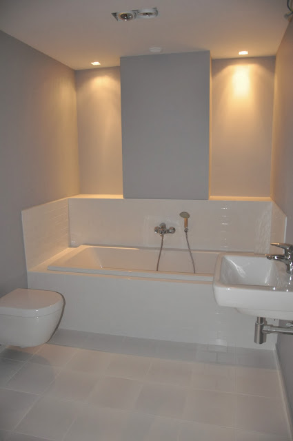 Ponieważ nad łazienką było kilka metrów nieużywanej zamkniętej przestrzeni postanowiłam zrobić antresolę. To pociągnęło za sobą konieczność obniżenia sufitu łazienki ale i możliwość ukrycia tego czegoś w rogu. Nawet nie wiem co to było:)